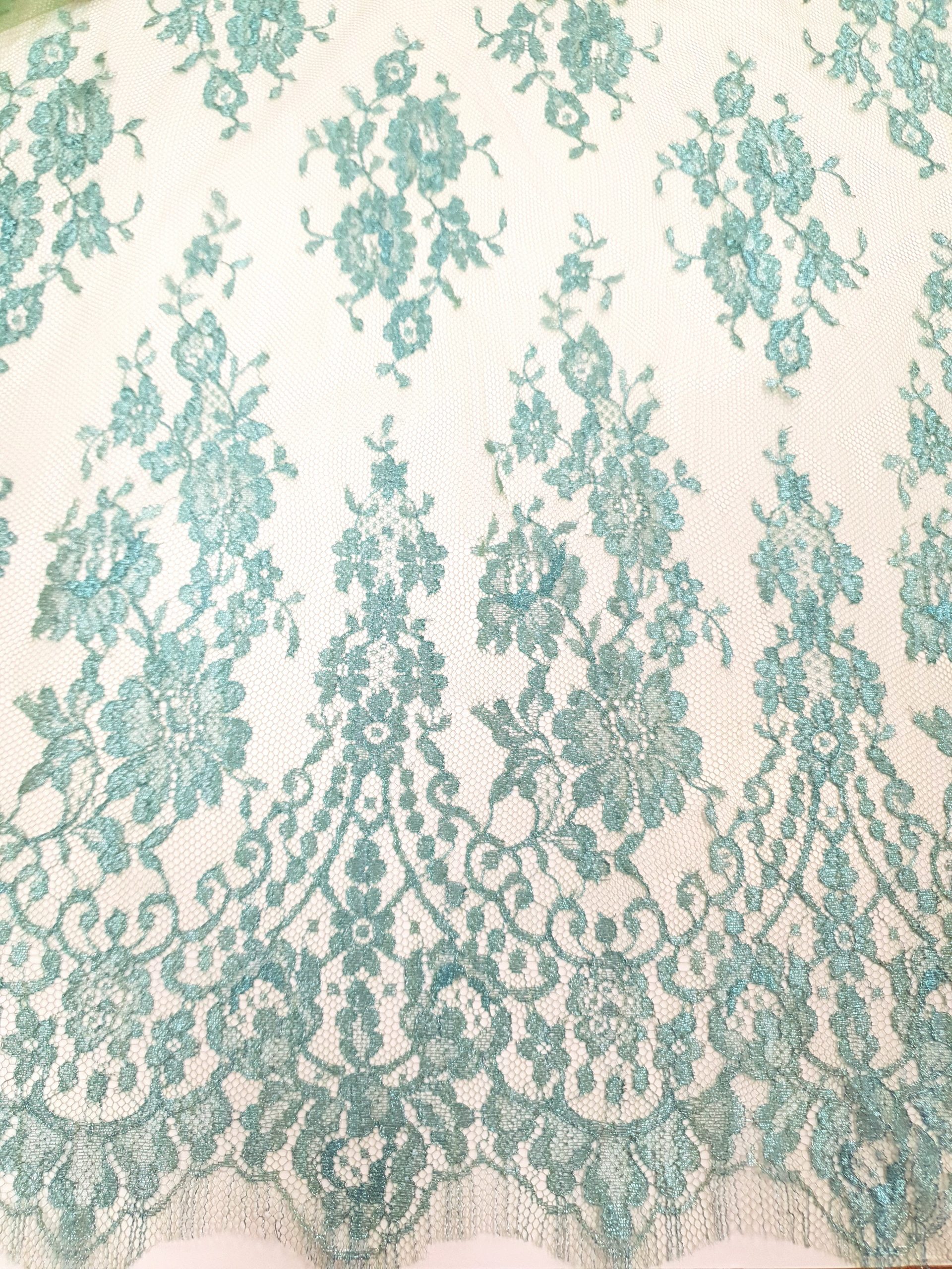Couleur : turquoise (motifs) , menthe (base tulle)
