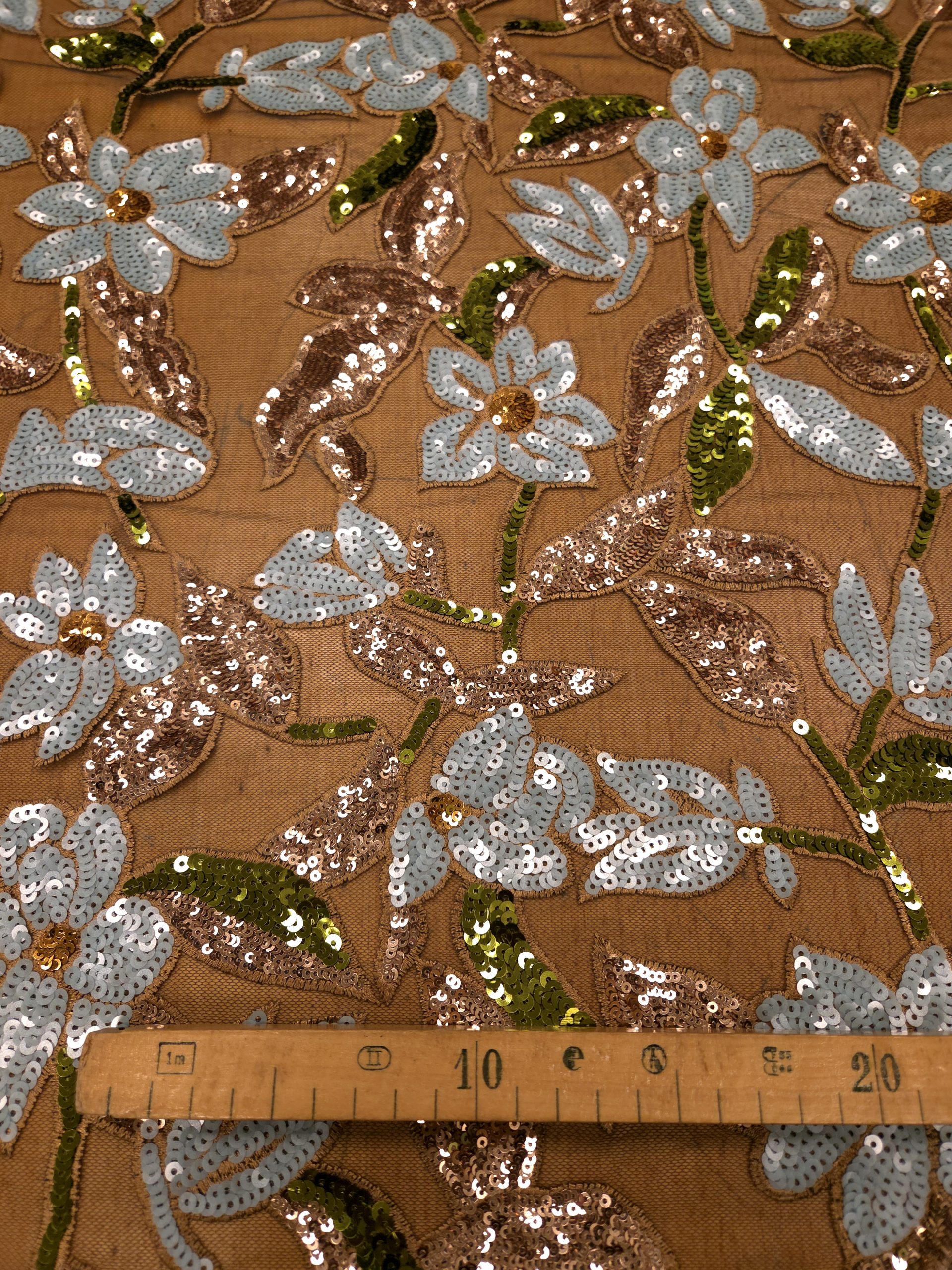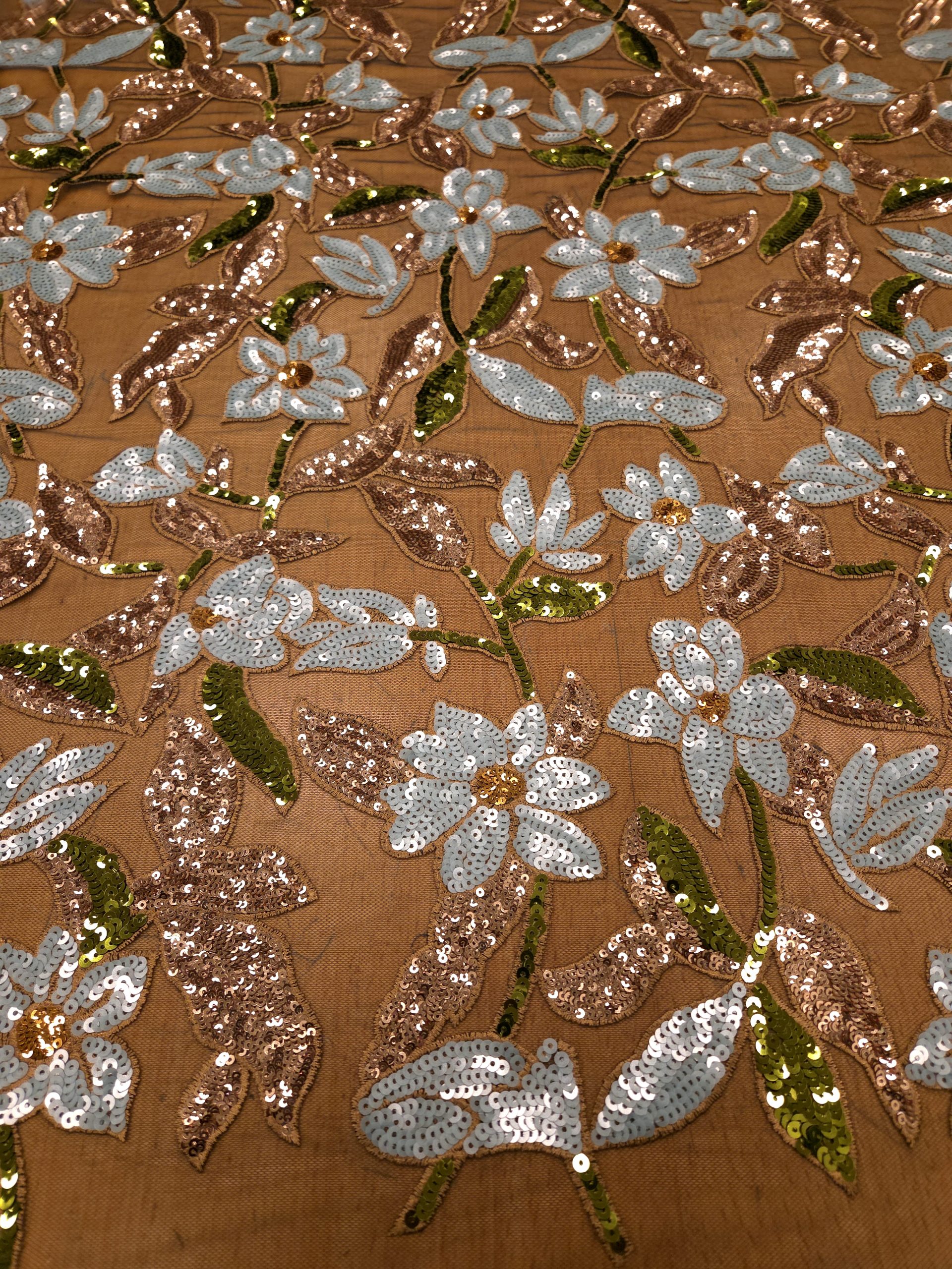 Superbe tulle brodé de sequins haute-couture motif fleuri.