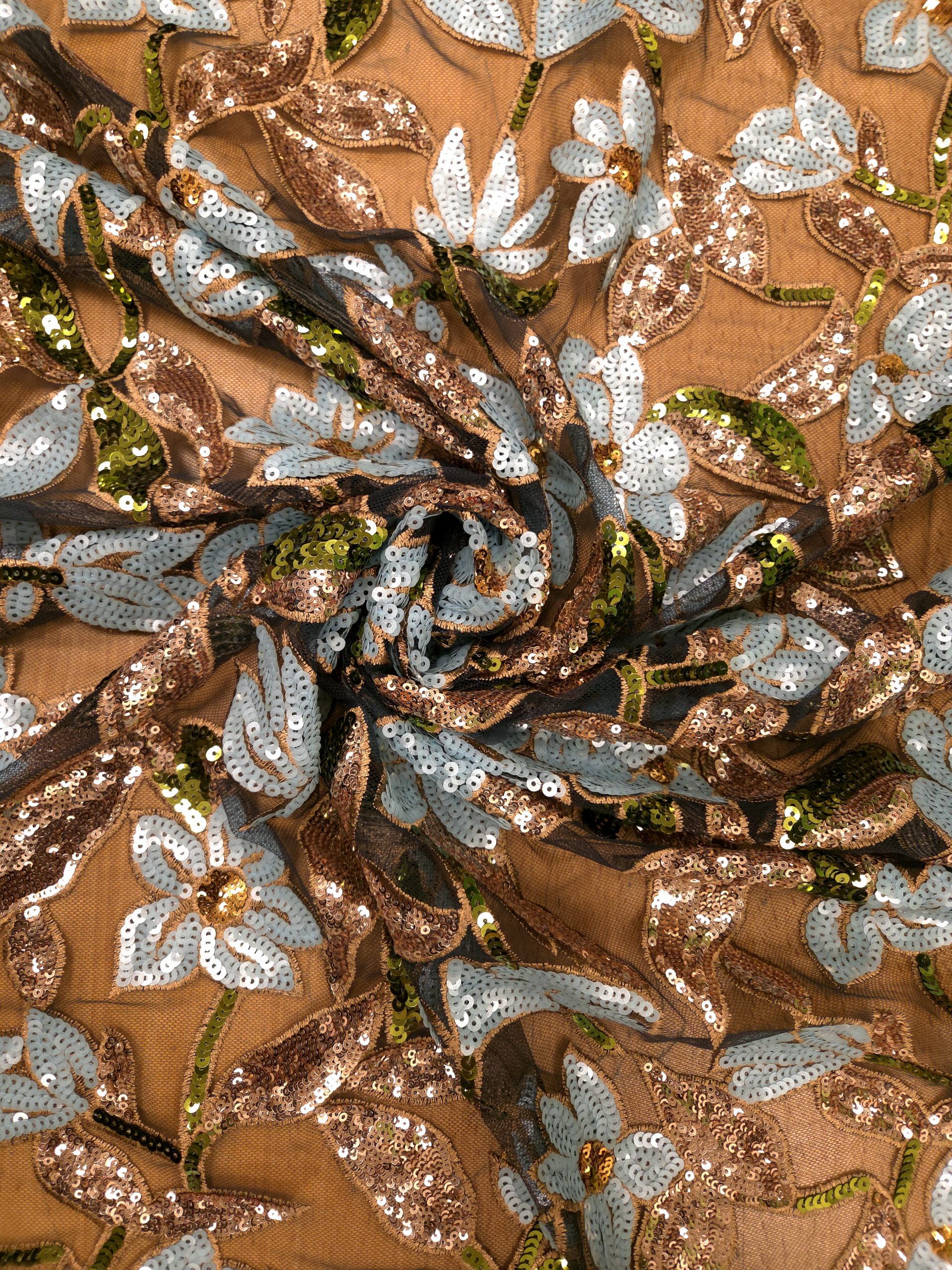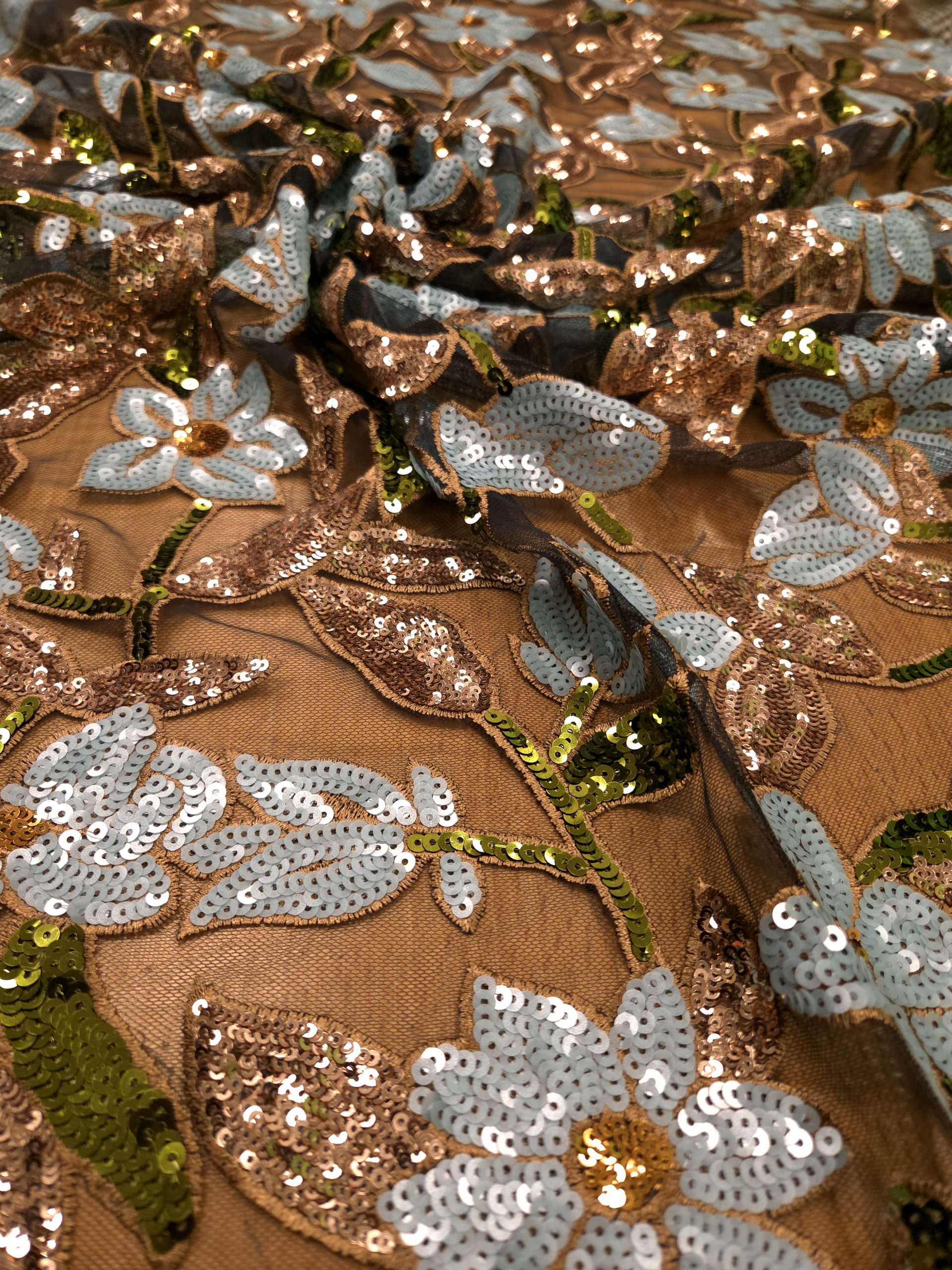 tulle brodé fleuri sequin